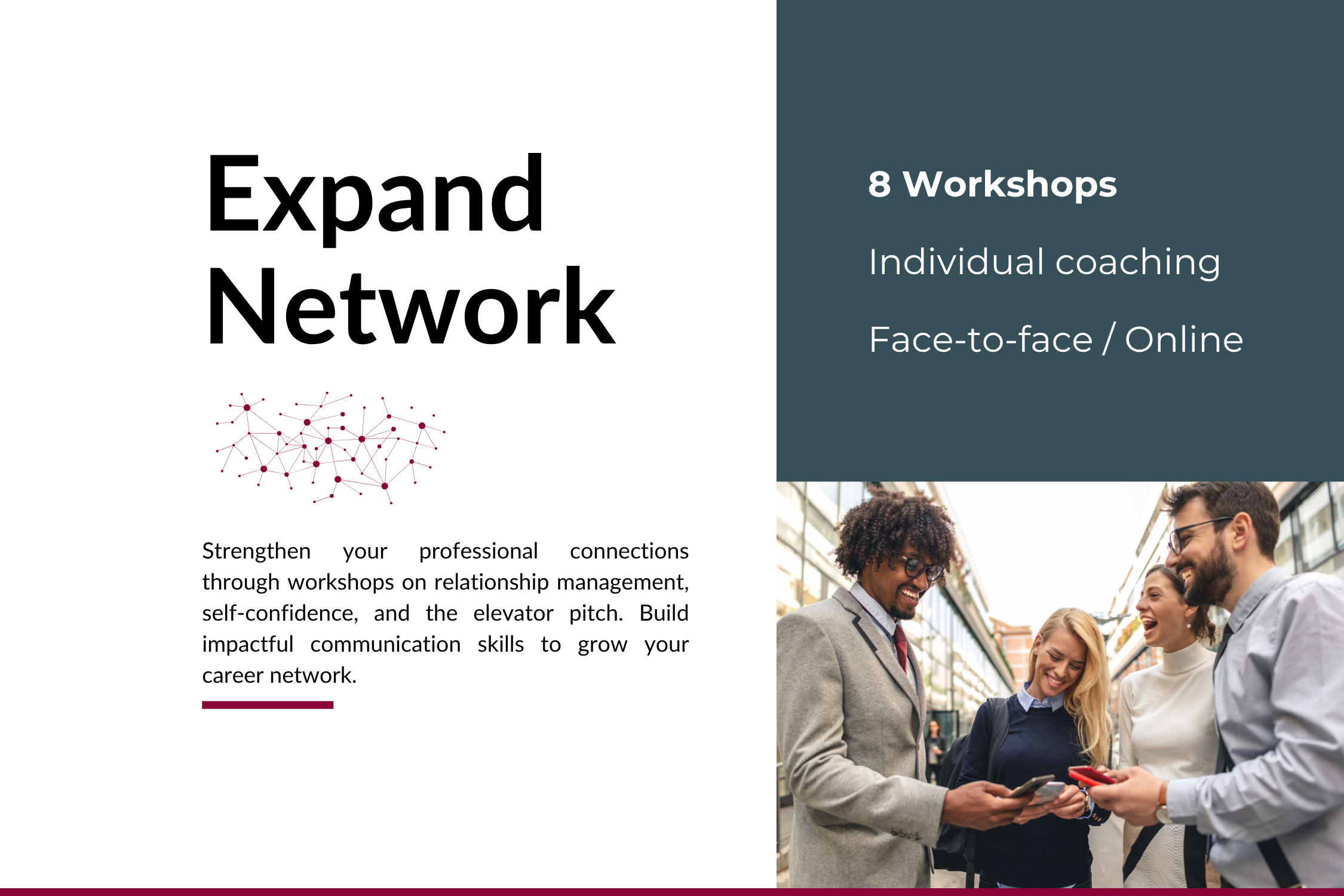 The program is open to everyone but is specifically designed for partners of international professionals. If you are interested in participating, please contact your partner’s HR department to find out if the program is funded for you as part of your family’s relocation package.